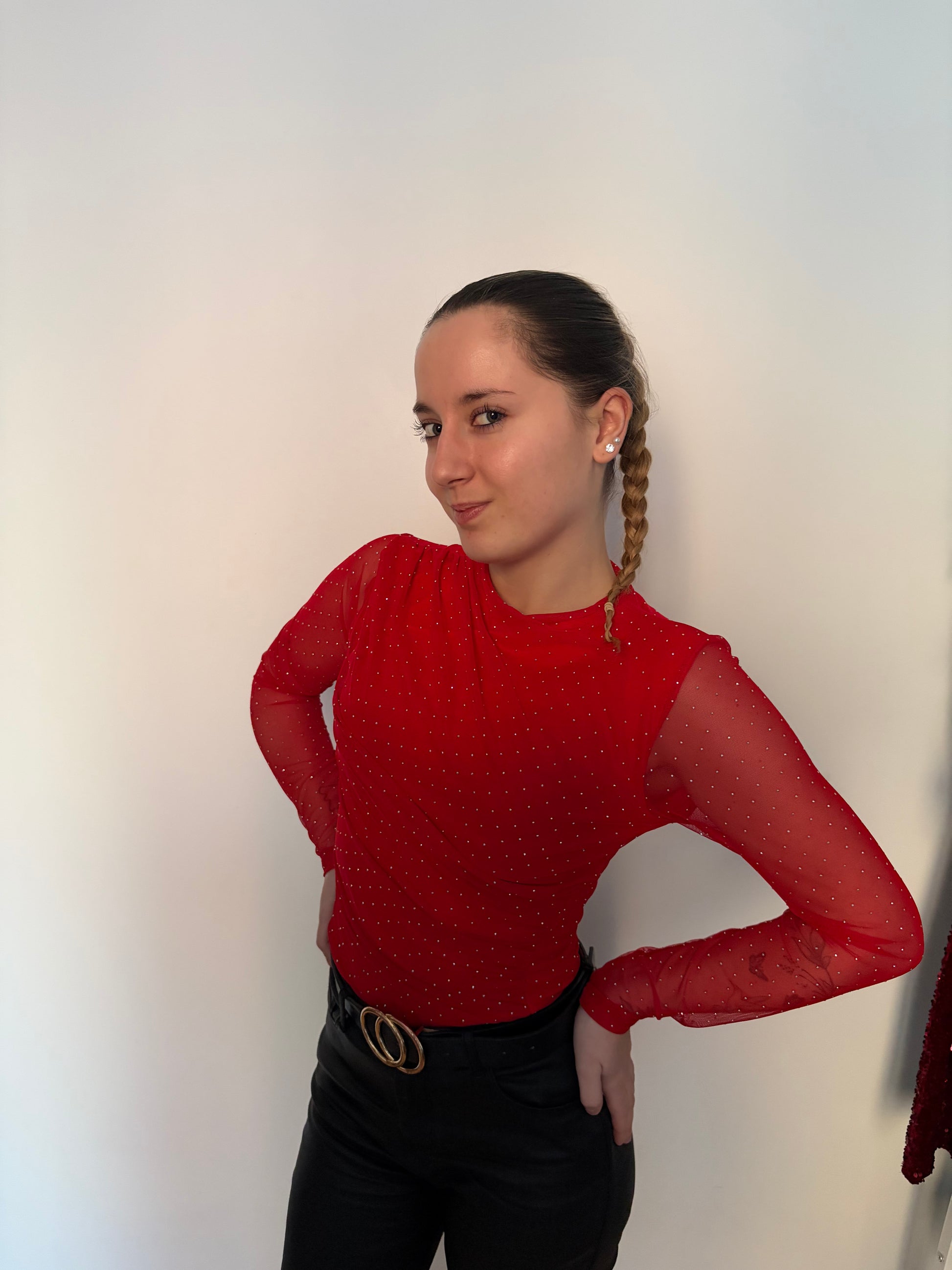 Body manches longues TU rouge pailletée